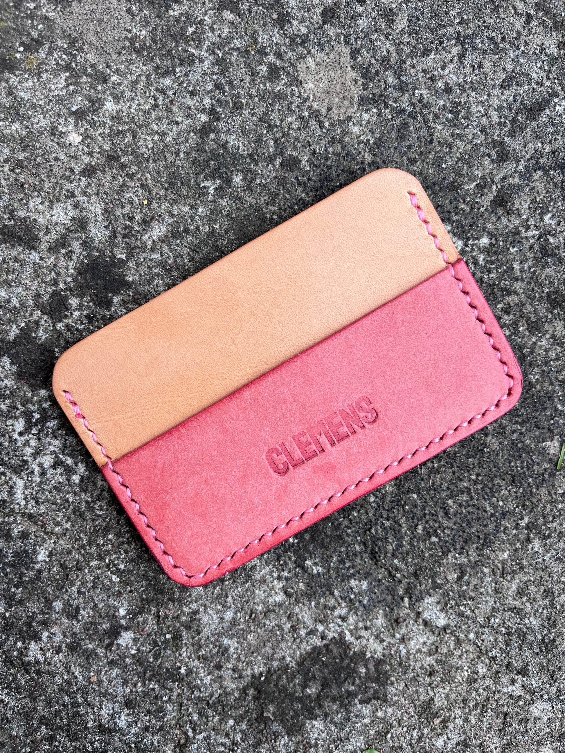Simple card wallet with two compartments made from Italian Conceria Walpier leather with a Buttero finish and from Badalassi Carlo Pueblo
