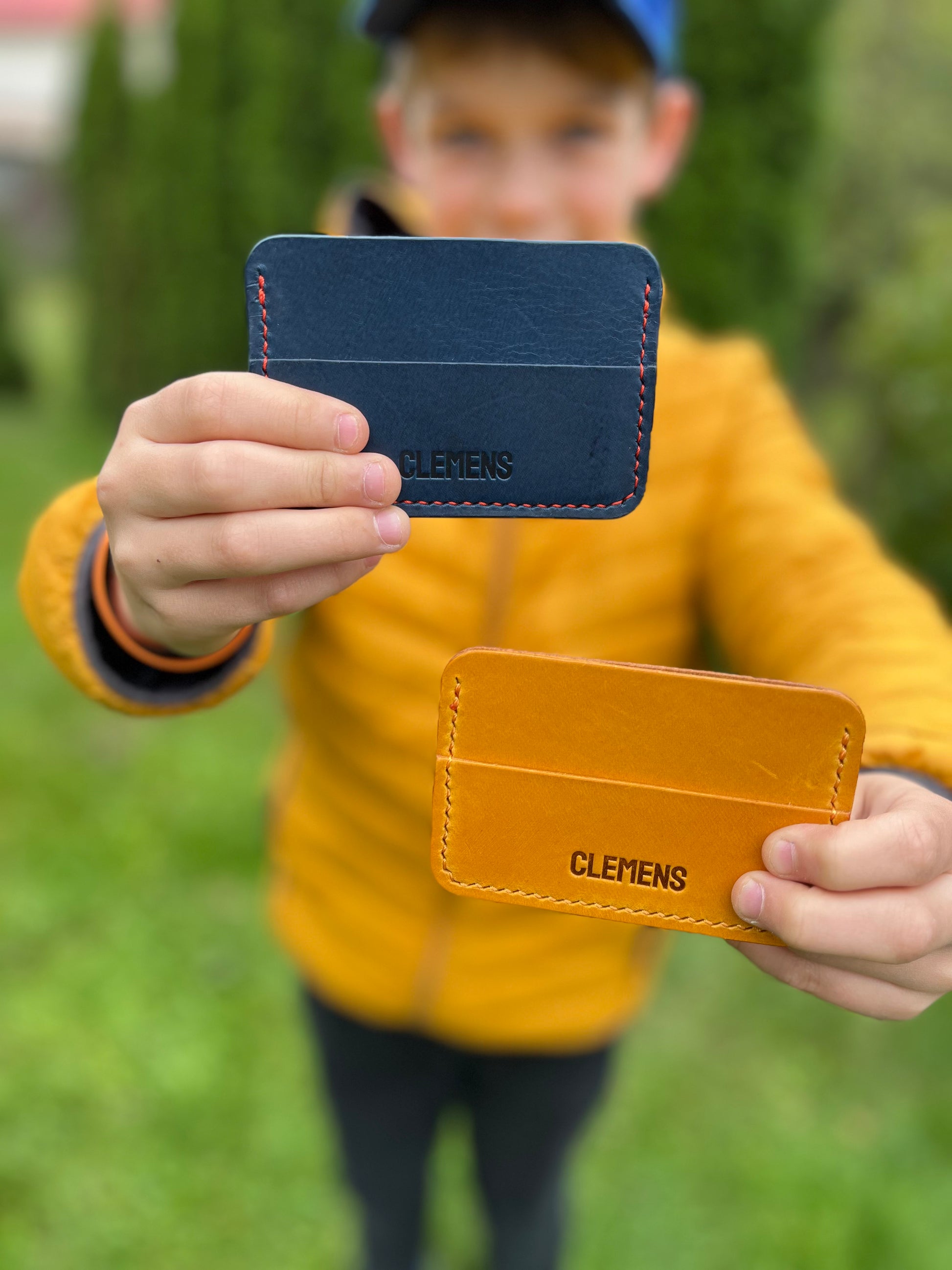 Simple card wallet with two compartments made from Italian Conceria Walpier leather with a Buttero finish